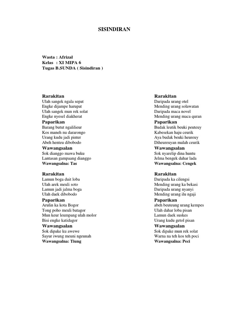 Contoh Sisindiran Paparikan Rarakitan Dan Wawangsalan Sunda Youtube from i.ytimg.com Maybe you would like to learn more about one of these? Contoh sisindiran paparikan silih asih. Check spelling or type a new query. We did not find results for: